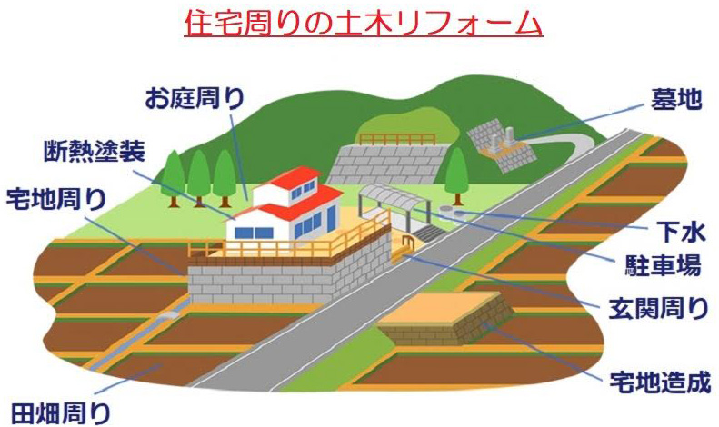 公共事業を中心に当社は民間工事にも強く力を入れており「住宅周りの土木リフォーム」今後更に力点を置いていきたいと考えております。